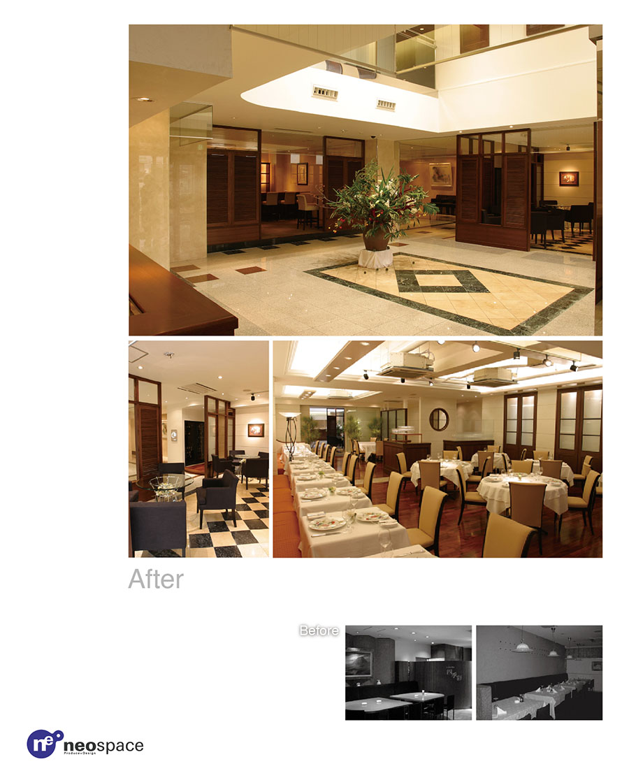 - ビジネスホテルを高品位レストランホテルに全面改修