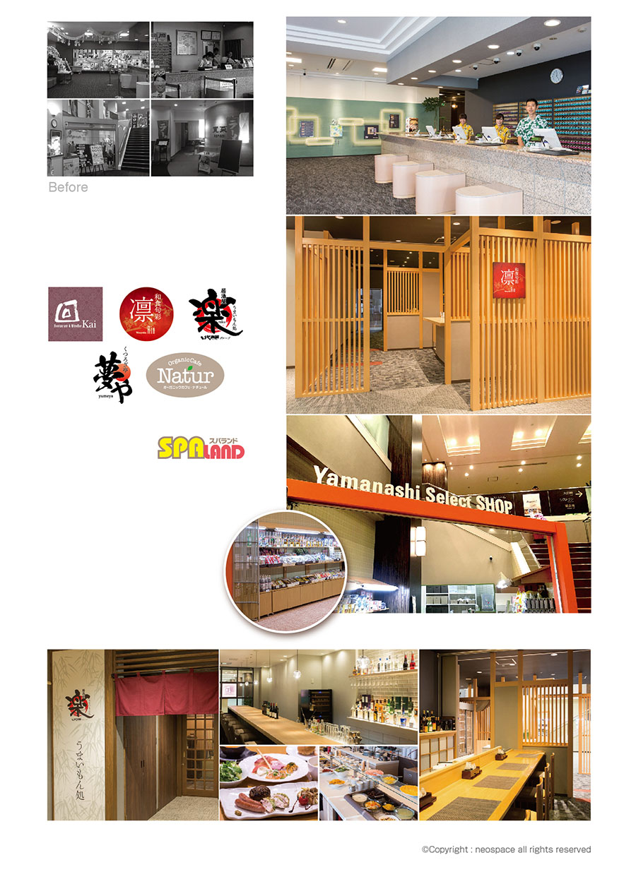 - 人気温浴施設の宿泊施設老朽化に伴う改修工事に併せた公共部分のリノベーションプロジェクト。