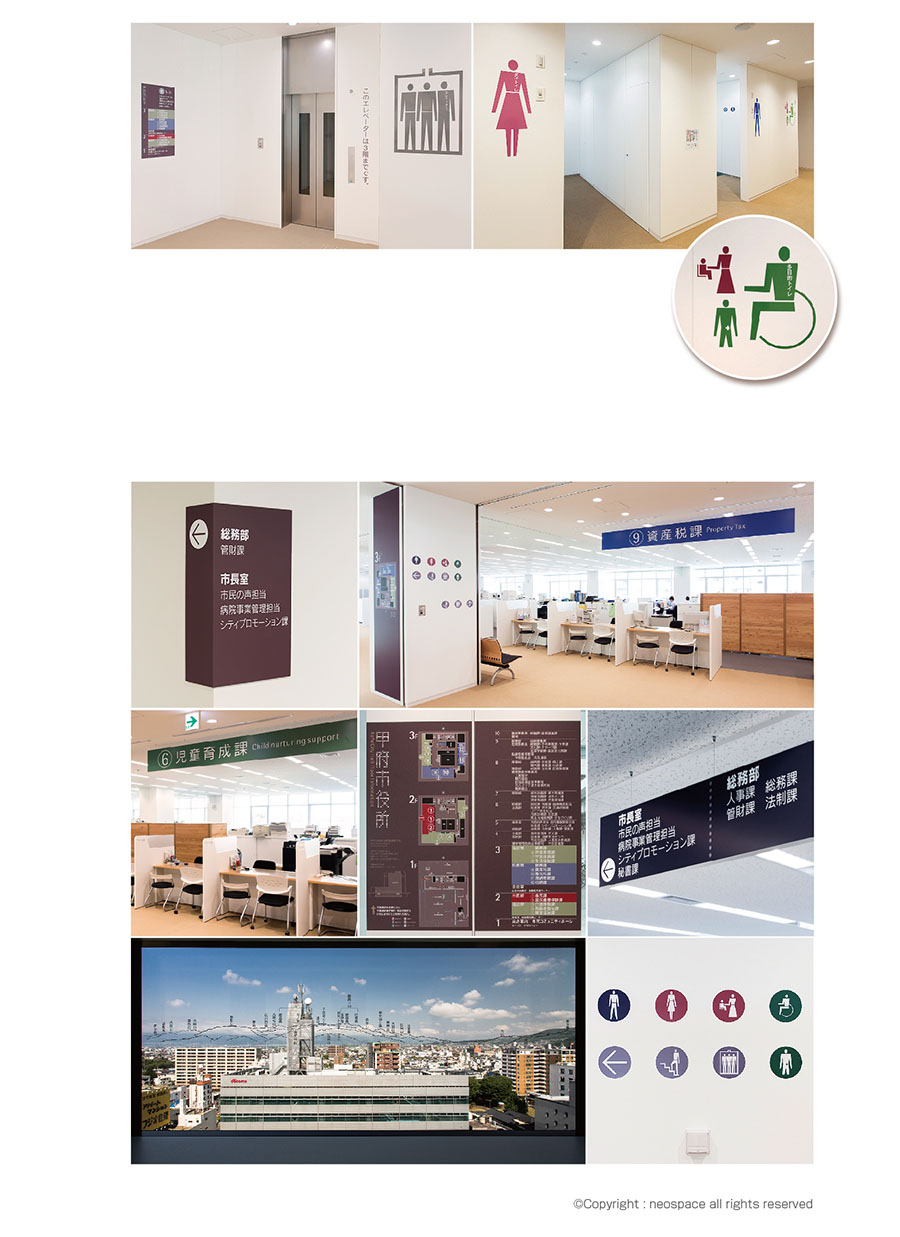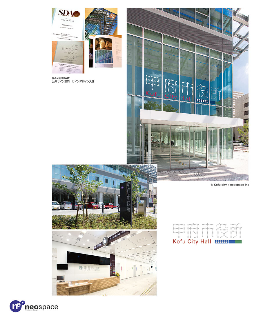 新市庁舎建設に伴い、新たに施設の「顔」となるロゴマークを設定。綿密なサインシステムの構築を通し人々に馴染みやすいイメージを持たせることで、来庁者に不安や不満を抱かせない案内役としての役割をはたす。