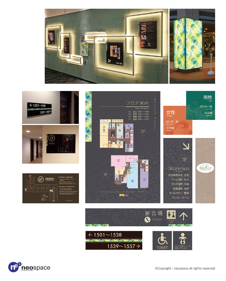 branding exhibition-event 前のページに戻る 【branding】サイン計画 スパランド ホテル内藤 C.I サイン計画 「リフレッシュ・リゾート」を新コンセプトに据えた人気温浴施設のリノベーションに合わせた全館サインシステムの構築 前のページに戻る